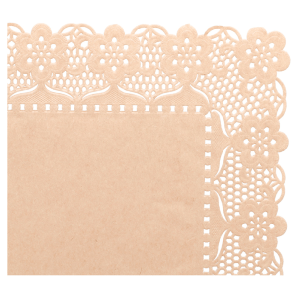 Blonda rectangular con calados para pastelería de color beige fabricada con un alto gramaje de 40 g/m2, con lo que se garantiza una altísima calidad del producto.