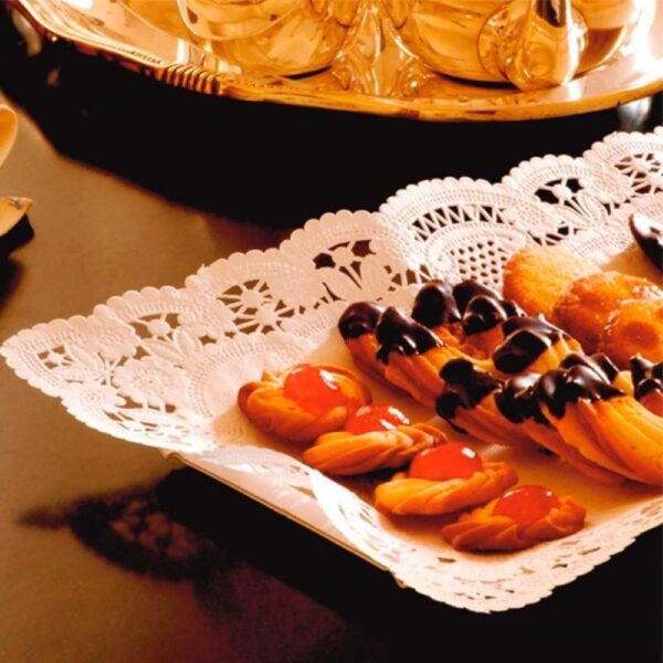 Al tratarse de papel es más sostenible con el medio ambiente que el plástico. Con esta blonda podrás presentar diferentes tipos de comida de forma elegante y sofisticada.