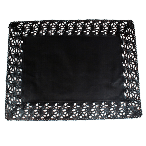 Blonda rectangular con calados para pastelería de color negro fabricada con un alto gramaje de 40 g/m2, con lo que se garantiza una altísima calidad del producto.