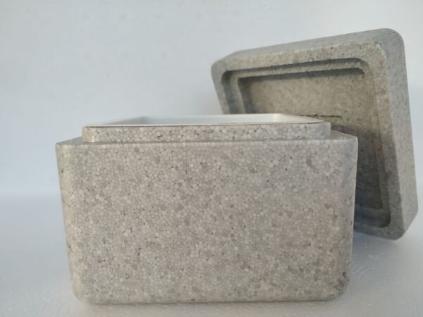 Mini caja térmica de porexpan con tapa ajustada. Ideal para muestras, alimentos o pequeños envíos térmicos. Máxima eficiencia en tamaño compacto.