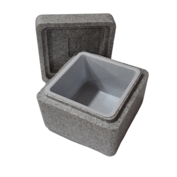 Cajas con Tapa Porexpan Color Gris 0,5 Litros con recubrimiento interior extraíble en polietileno en la base de la caja.